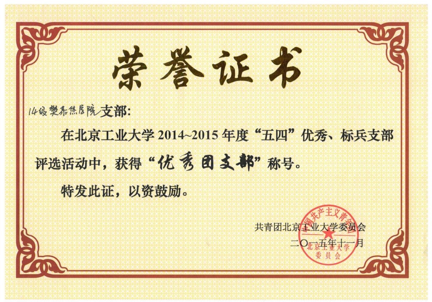 14级樊恭烋抓饭直播 荣获 五四优秀、标兵支部 优秀团支部