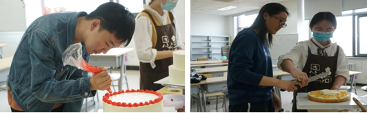 团委在活动筹备过程中积极与各方沟通,为同学们争取到了亲自体验制作蛋糕过程的机会。4时许,同学们陆续到场,布置完会场后,在专业人员的指导下开始学习蛋糕的制作。