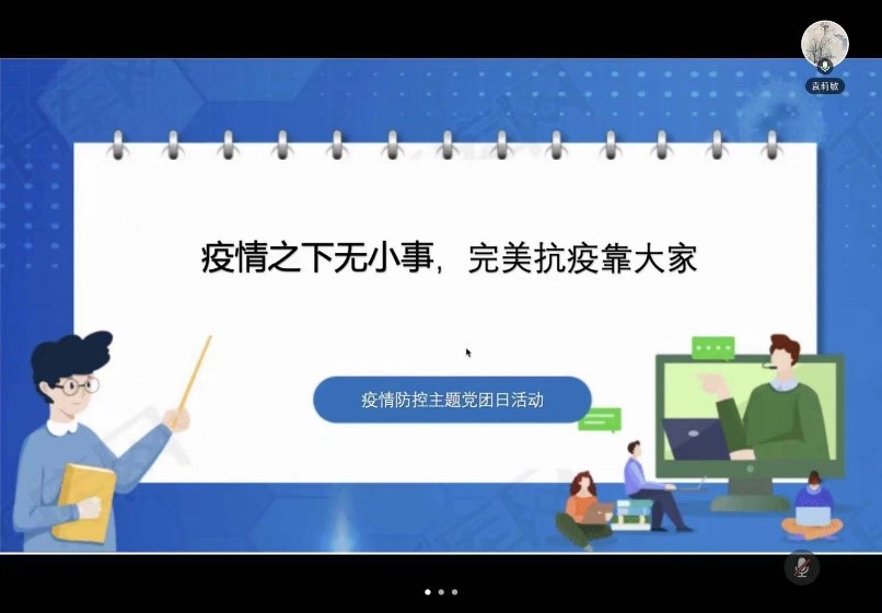 面向全体学生以班级为单位举行了“师生同心战‘疫’,共筑校园长城”疫情防控主题班会。各班班会以线上线下相结合的方式分头召开,袁莉敏副院长出席了班会,辅导员戴璐老师、张萌老师主持了各班会。
