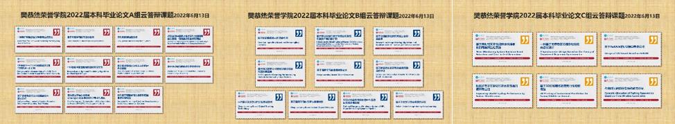 的悉心部署,同时也完美地展现了同学们在毕业设计过程中所付出的努力,同学们也纷纷以优秀的答辩成果为本科阶段完美收官,感谢2022届的毕业生们分享本次线上答辩的记忆。