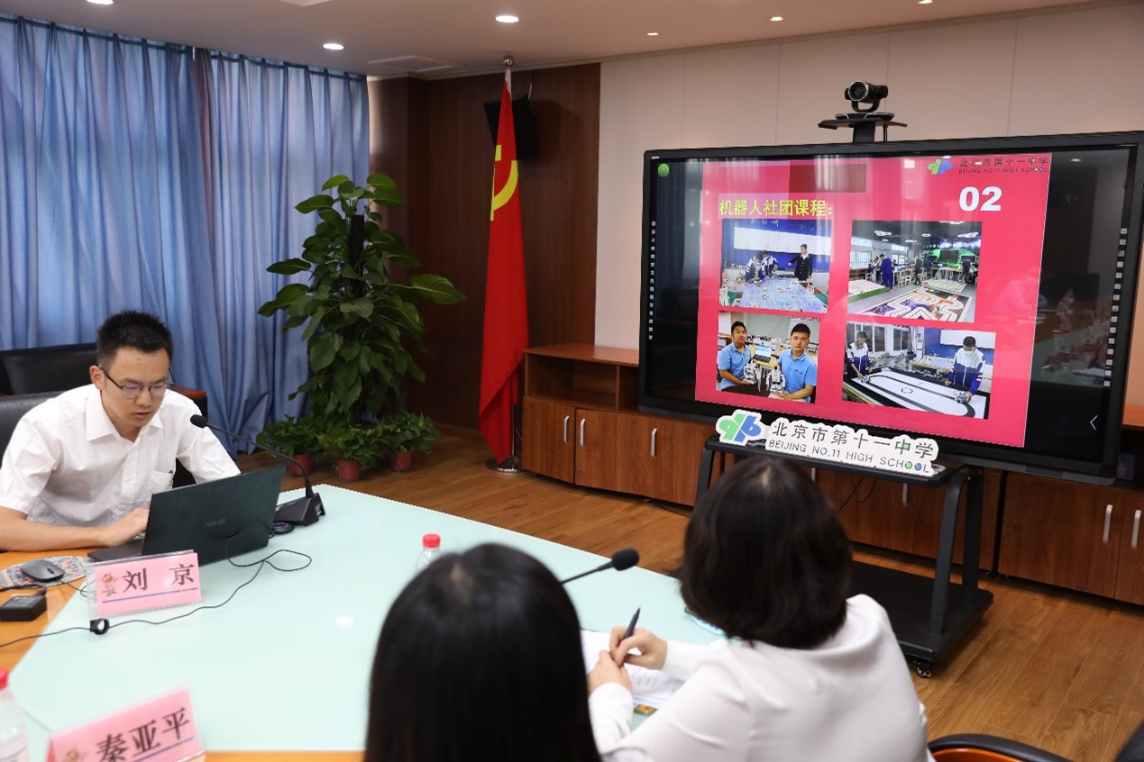 随后,北京市第十一中学创新发展院执行院长秦亚平和人工智能领域项目负责人刘京老师分别就“11中创新人才一体化培养模式探索”、“11中人工智能领域育人实践”分享报告,与会教师一起观看了视频《梦起大十一,梦圆北工大》。