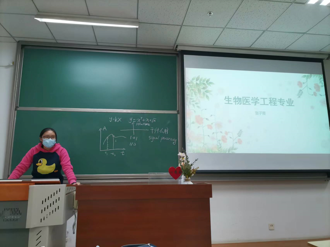 同样推免至北京理工大学的张子菁学姐则为大家介绍了生物医学工程这一专业。学姐指出,生医工作为综合了生物学、医学和工程学的有机融合学科,区别于生物、医学等传统经典学科,亦有别于工程学科;尽管属于工科门类,隶属于我校环生学部,是工科中极具特色的专业。随后,学姐系统介绍了该专业的核心知识领域与研究方向,给同学们提出了可靠的建议与深切的希冀。生物工程医学作为渗透到医学研究的工程学科,它让冰冷的医疗工程机械也拥有了人心的温度。
