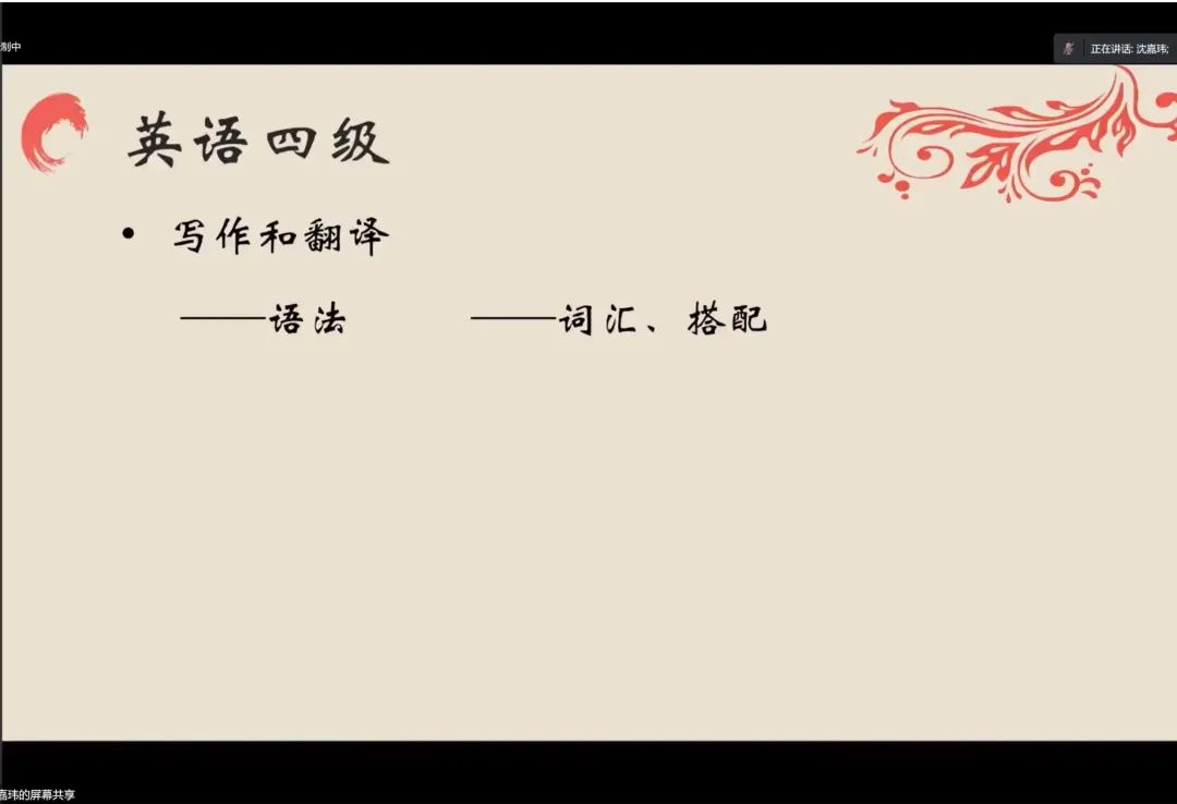 沈嘉玮学长从英语四级备战、stone项目和编程语言学习三个方面提出了建议。首先,对于四级备战,学长建议从词汇入手,尽量扩大词汇量,先分模块针对性练习,再整卷练习,保持手感。此外,寒假是stone项目查找文献、学习基础知识和软件使用的关键时期,一定要牢牢把握。最后,他建议同学们自学Python,C++,Matlab等编程语言,为后期学习打下基础。