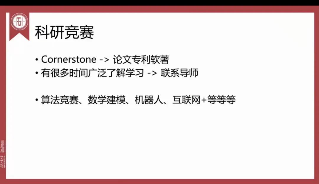 对于大一,大二的同学,褚泓博学长建议利用寒假这段完整的时间投身于自己感兴趣的竞赛之中。对于stone项目,寒假也是知识储备和项目进展的重要时期。此外,同学们还要勇于试错,找到自己感兴趣的方向。对大三保研的同学,学长建议要利用寒假确定研究方向,选择目标学校和导师,他重点对选择导师的流程和方法进行了演示。最后,他告诉同学们要放平心态、保持锻炼、敢想敢干。