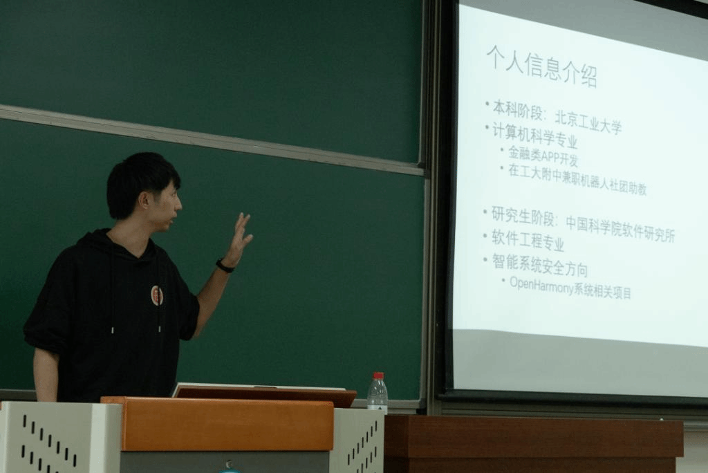 李苍源学长通过讲述自己丰富的实践经历,激励同学们多多进行尝试,不断提升自己的创新实践能力,从而达到更高的学术追求和境界。之后他又通过介绍自己的专业研究方向,讲述了目前业界的瓶颈与未来发展方向,为同学们的未来指明了道路。