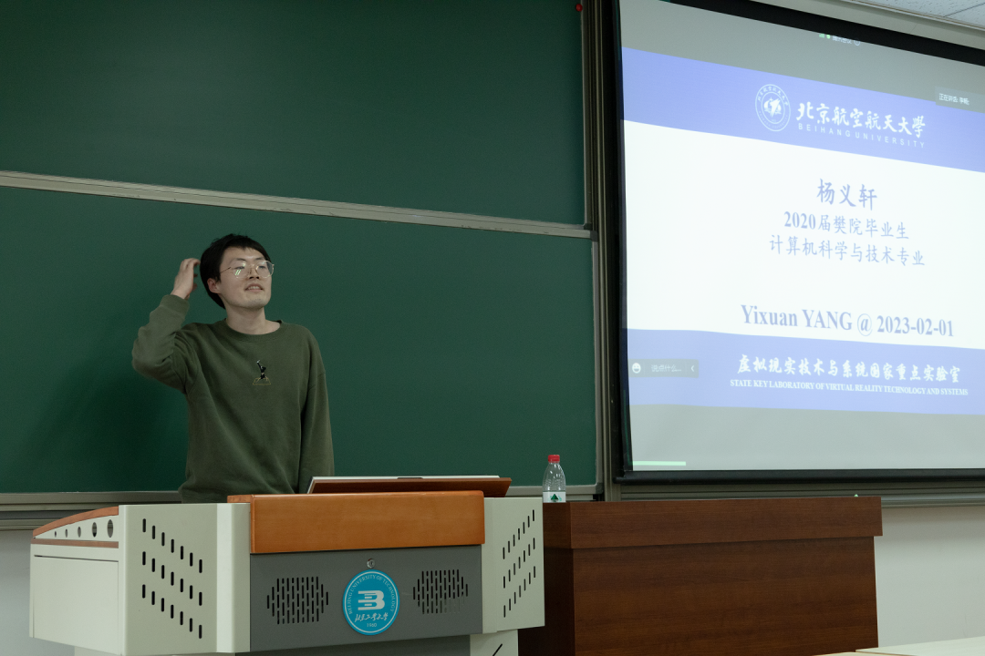 杨义轩学长首先回顾自己在大学期间计算机专业课程屡获高分的经验,但也指出自己忽视了更多实践能力提升的遗憾。由此,杨学长告诫同学们尽早做好未来的打算,提升自己的实际操作能力,早早的拿到可以接触到实际有用的实习项目,而不是一味埋头死学,得到了成绩却忽视了自己的实际实践能力。