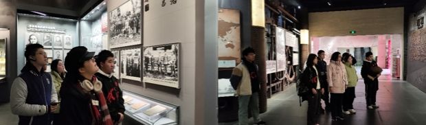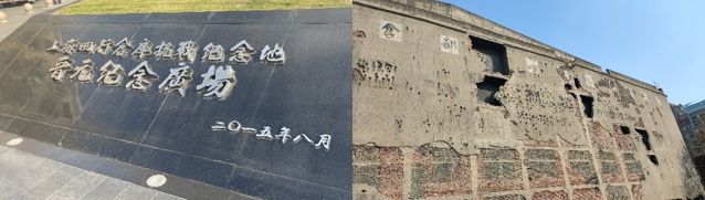 在下午时分,学子们来到了位于静安区光复路1号的四行仓库。密密麻麻的弹孔与墙体坍塌后的漆黑洞口布满了仓库西面,无不透露着当时战况的惨烈。室内的展览使学生们对守卫于此的八百壮士的赤忱爱国之心有了更深刻的体会,对他们以肉体铸造的不朽传奇有了更细微全面的理解。