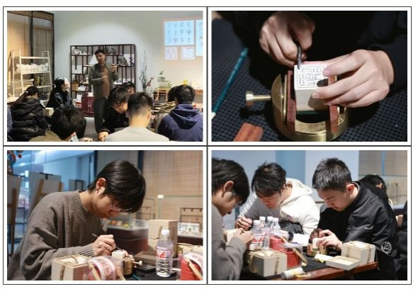 在老师们的耐心指导下,同学们亲自动手,在印章上刻下自己的名字或寓意深远的词语。一次次精心雕琢,让同学们领略到刀锋的力道与刻下的艺术张力。最终,每位同学都完成了自己的篆刻作品。这些小小的印章,不仅承载着同学们对传统文化的理解与表达,更是对非遗项目传承的珍贵贡献。