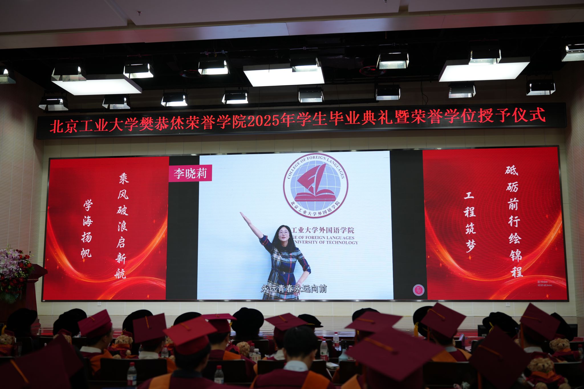 2025届学生毕业典礼暨荣誉学位授予仪式在知新园二层报告厅顺利拉开帷幕。北京尖峰计算机系统有限公司任小芬总经理、段莉副总经理,北京工业大学副校长刘赵淼教授、教务处副处长雷飞、罗琳老师、市教委学生处四级调研员、教务处处长助理吴静老师、机械与能源工程抓饭直播