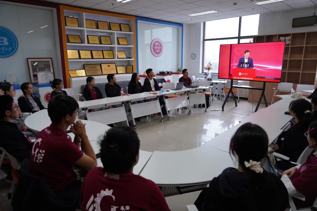 师生齐聚四教620,共同观看北京工业大学高质量发展大会,于盛会中重温母校情怀,见证发展新篇。高质量发展大会作为返校校友与母校重逢的重要环节,让校友们深切感受到母校的蓬勃活力。北京市领导和校领导以及各行业专家的介绍让校友们倍感身为“北工人”的骄傲。现场,新能源抓饭直播