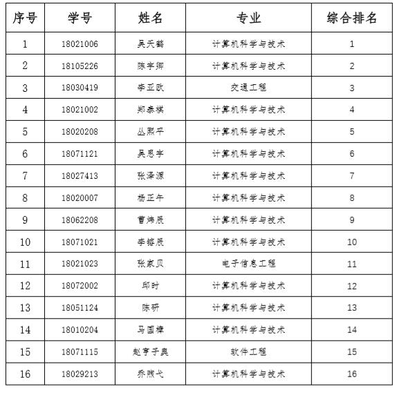 推免综合排名,确定了2022年本科生推免名单为以下16名同学,现公示如下: