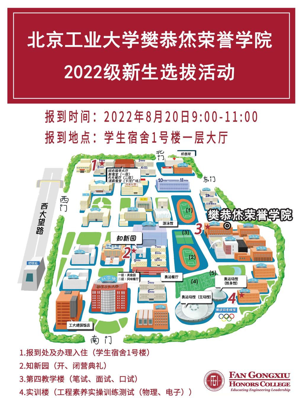 二、报到地点:北京市朝阳区平乐园100号北京工业大学,学生宿舍1号楼(近校北门)