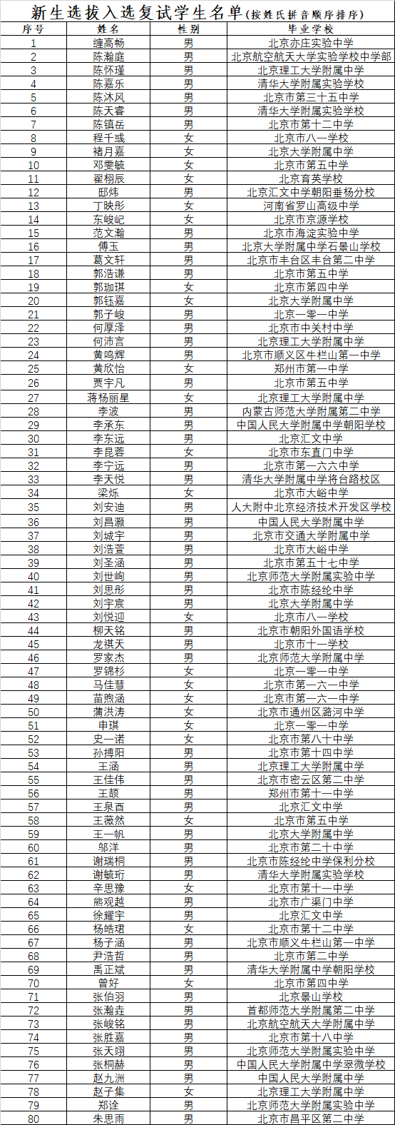 2023级抓饭直播 新生选拔通过网络报名、材料审核、专家组评审,确定以下80名同学参加抓饭直播 新生选拔复试。选拔复试的具体安排及相关信息将于近期发布,请及时关注抓饭直播官网 网站、微信公众号。