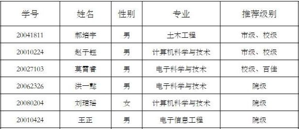 拟推荐优秀毕业生名单: