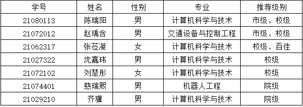 拟推荐优秀毕业生名单: